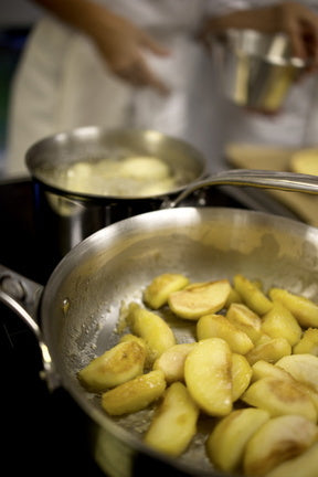 - La création d’une ganache vanille et le travaille des pommes fondantes caramélisées.